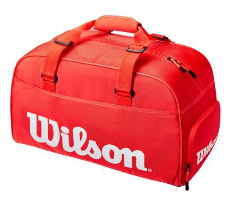 Superior quality, tennis-oriented functionality, and classic design collide: introducing Wilson's latest Super Tour bag collection. This small duffel bag comprises a main compartment with space for tennis gear, a zippered side pocket for smaller personal effects, and plastic feet on the bottom to prevent wear and scratching.