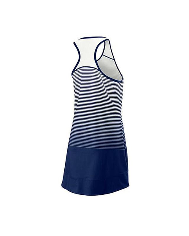 Gear up for game day in the Team Match Dress, a mid-thigh length racerback top with sublimated gradient stripes for additional visual appeal. Comfortable mesh tank straps combine with a side vent along the shaped hem for excellent breathability throughout match play.