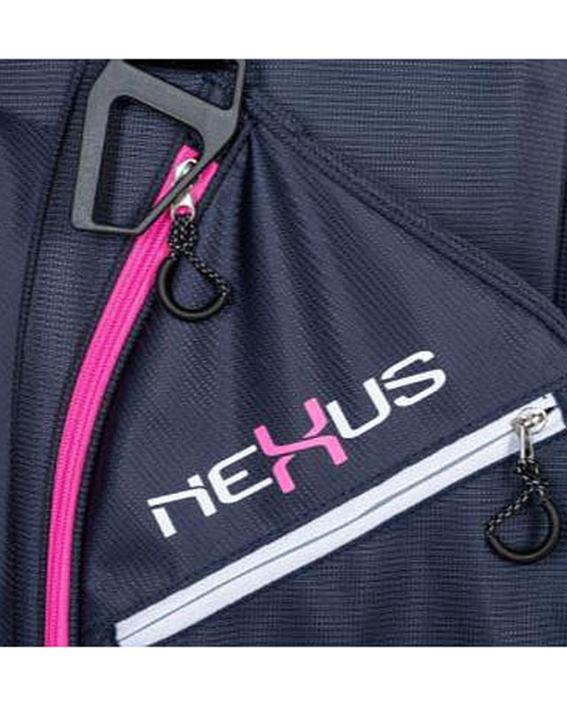 The Nexus Lite Cart bag offers a 14-way top for club organization. Equipped with a built-in handle and padded strap for the ease of unloading and demounting.